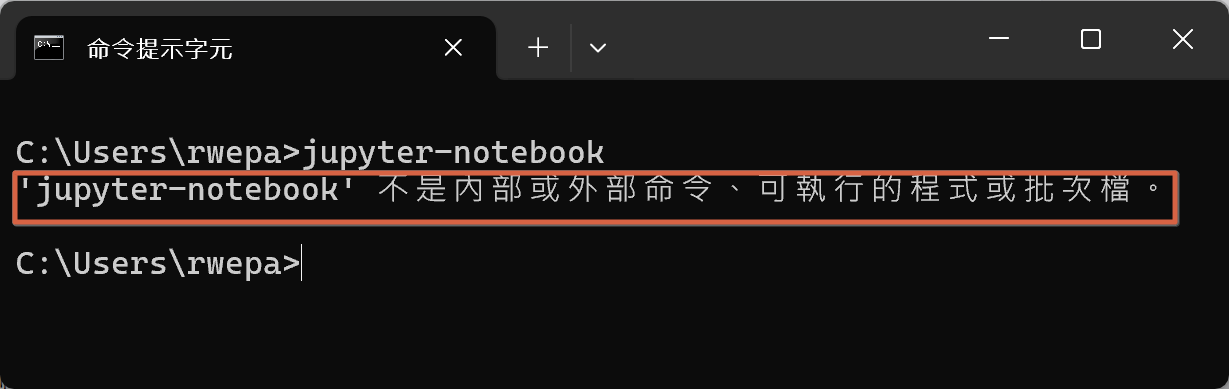 'jupyter-notebook' 不是內部或外部命令、可執行的程式或批次檔。